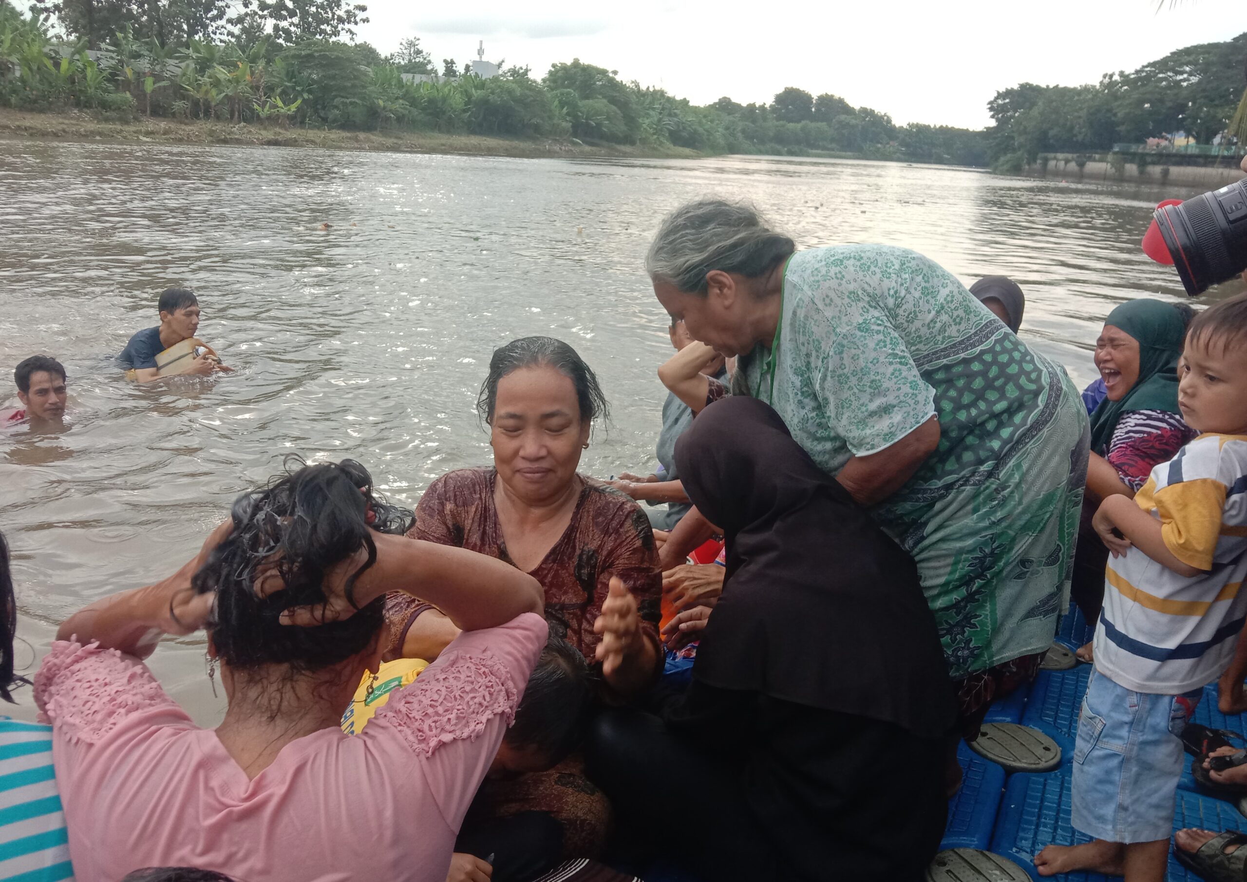 Masyarakat dari berbagai usia, mulai dari balita hingga orang dewasa, berkumpul di bantaran Sungai Cisadane Penuh semangat dan riang“Ini sudah biasa, mandi dan keramas bersama jelang bulan puasa setiap tahun. Ada juga warga dari luar. Airnya juga sudah dites sebelum kegiatan,” ujar bagus.