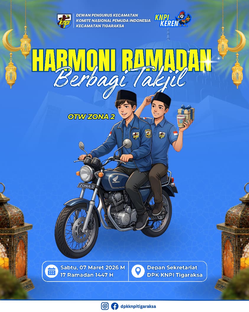 sorot24.id | TANGERANG – Dalam rangka menyemarakkan Bulan Suci Ramadhan, DPK KNPI Tigaraksa mengadakan kegiatan Harmoni Ramadhan dengan tema “Tebar Kebaikan Raih Keberkahan” dengan rangkaian kegiatan diantaranya berbagi takjil,santunan yatim dan buka puasa bersama. Adapun kegiatan tersebut di mulai tanggal 7 – 14 Maret 2026,dengan diawali berbagi takjil sebanyak 500 pack kepada masyarakat Tigaraksa .
