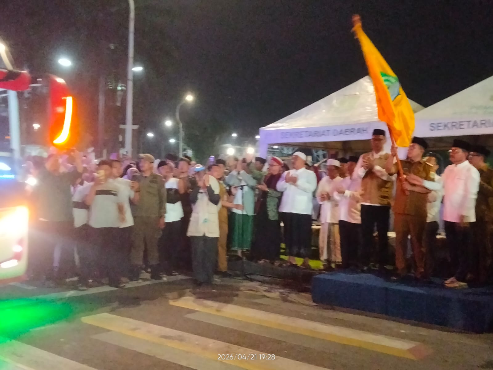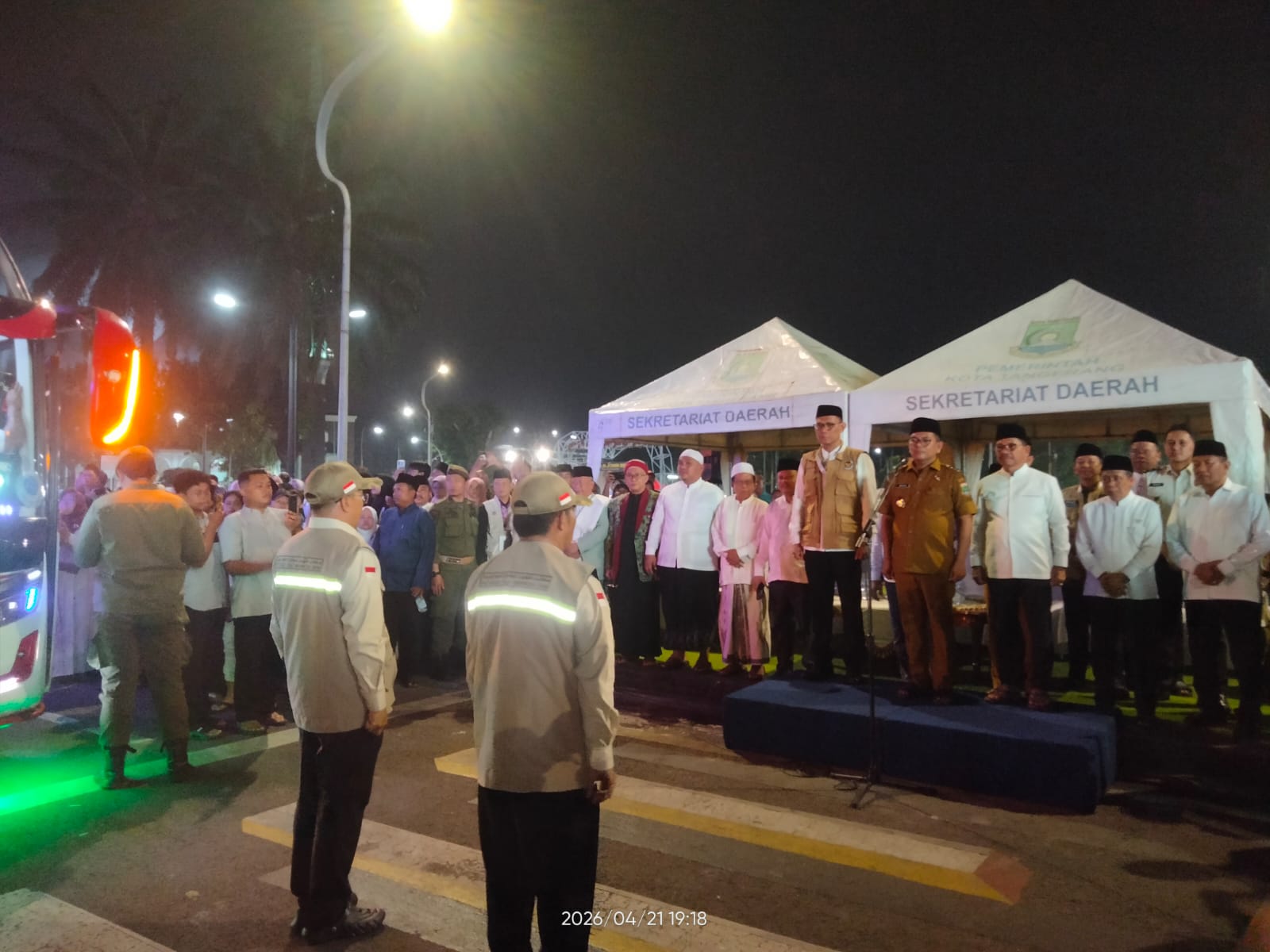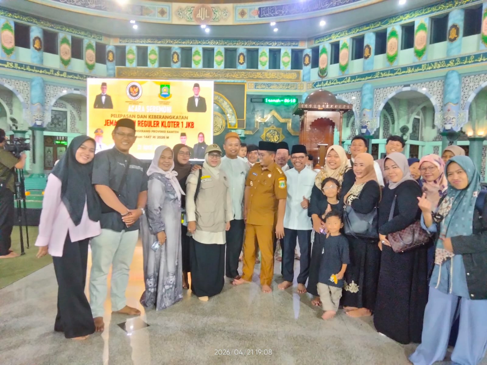Sorot24.id | Tangerang – Pelepasan Ribuan orang memadati Masjid Raya Al-A’zhom Kota Tangerang, Selasa (21/4). Mereka hadir mengantar sanak saudara yang akan menunaikan ibadah haji tahun 2026 ini.